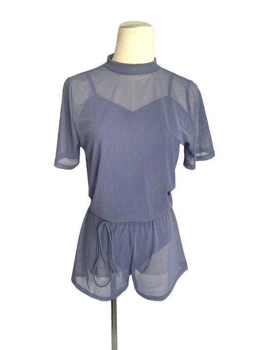 Mock Neck Power Mesh Romper-11785