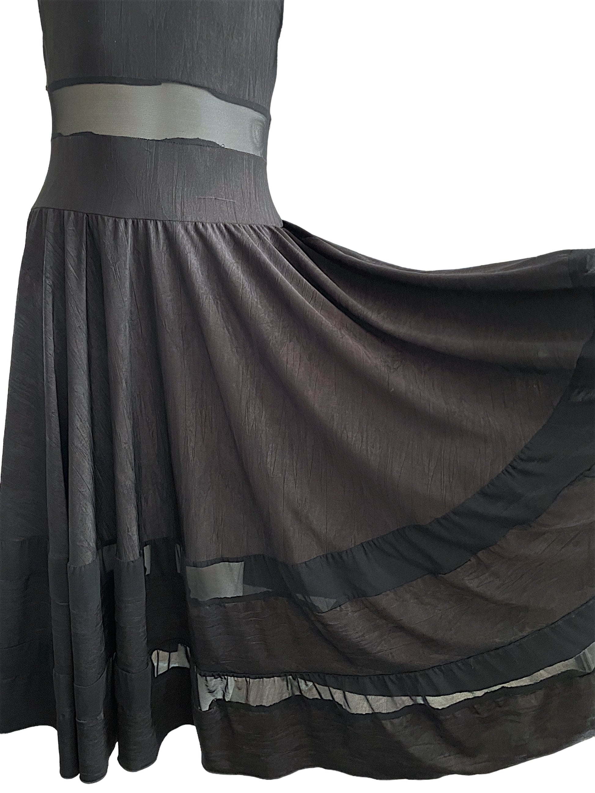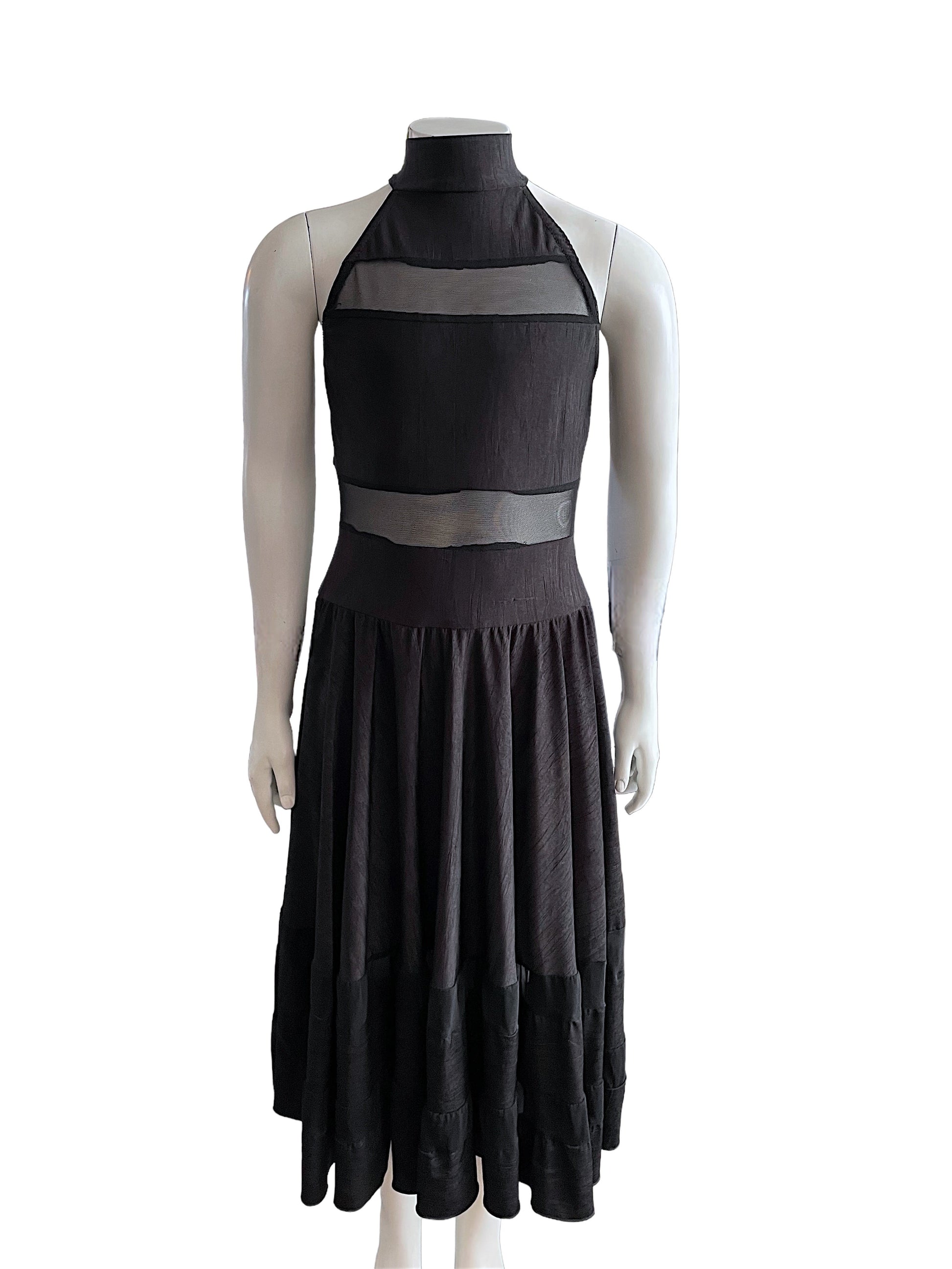 -Creased spandex dress with mesh insets over attached spandex leotard