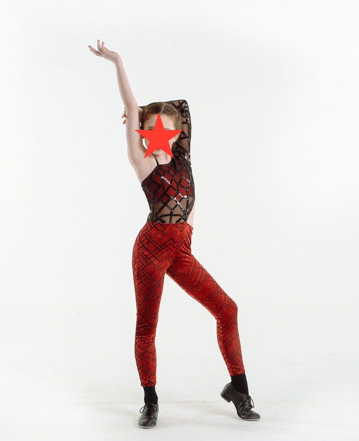 Click 'Size Chart' to view the chart specific to this costume, as sizing varies by dance costume brand.