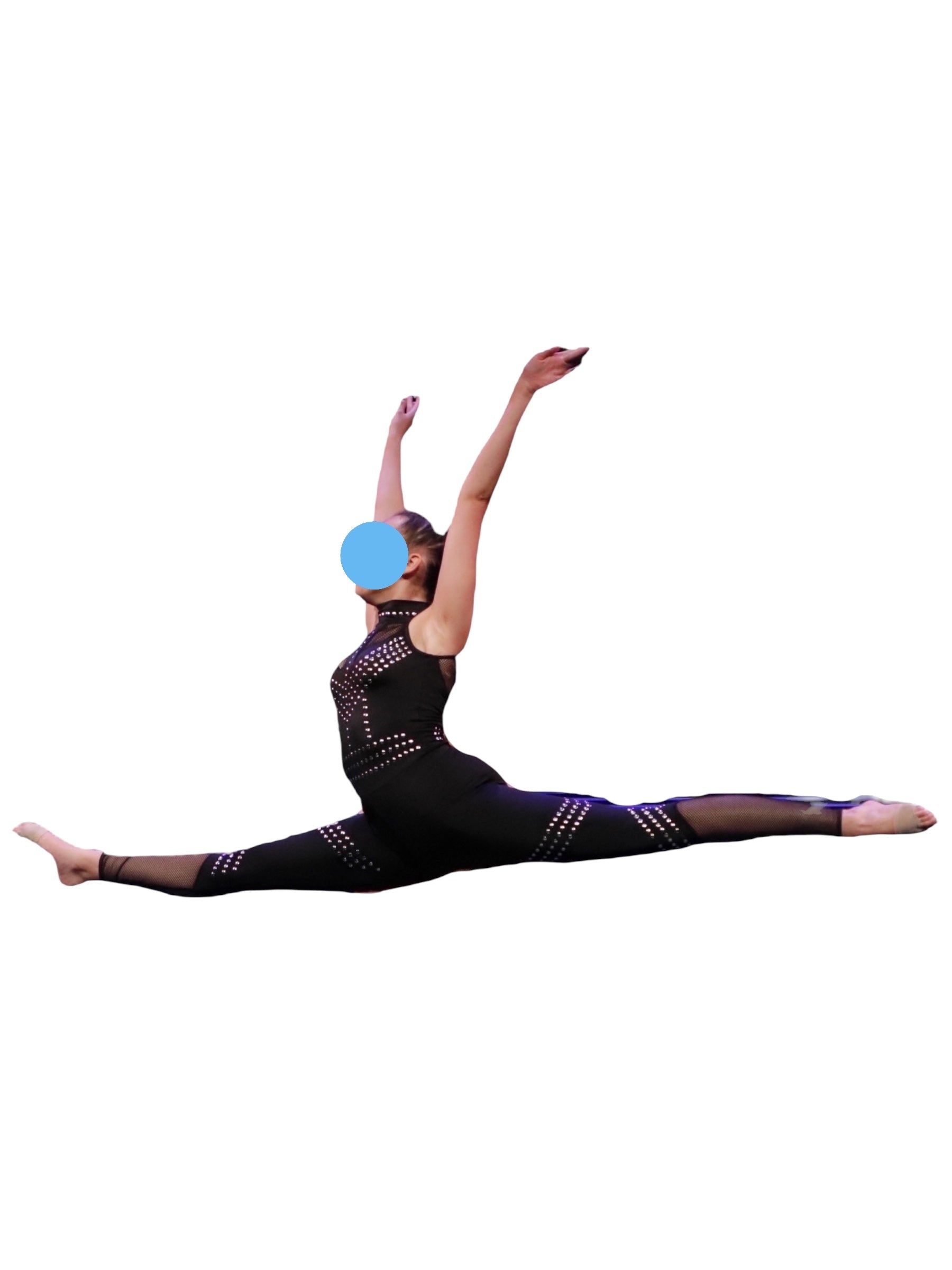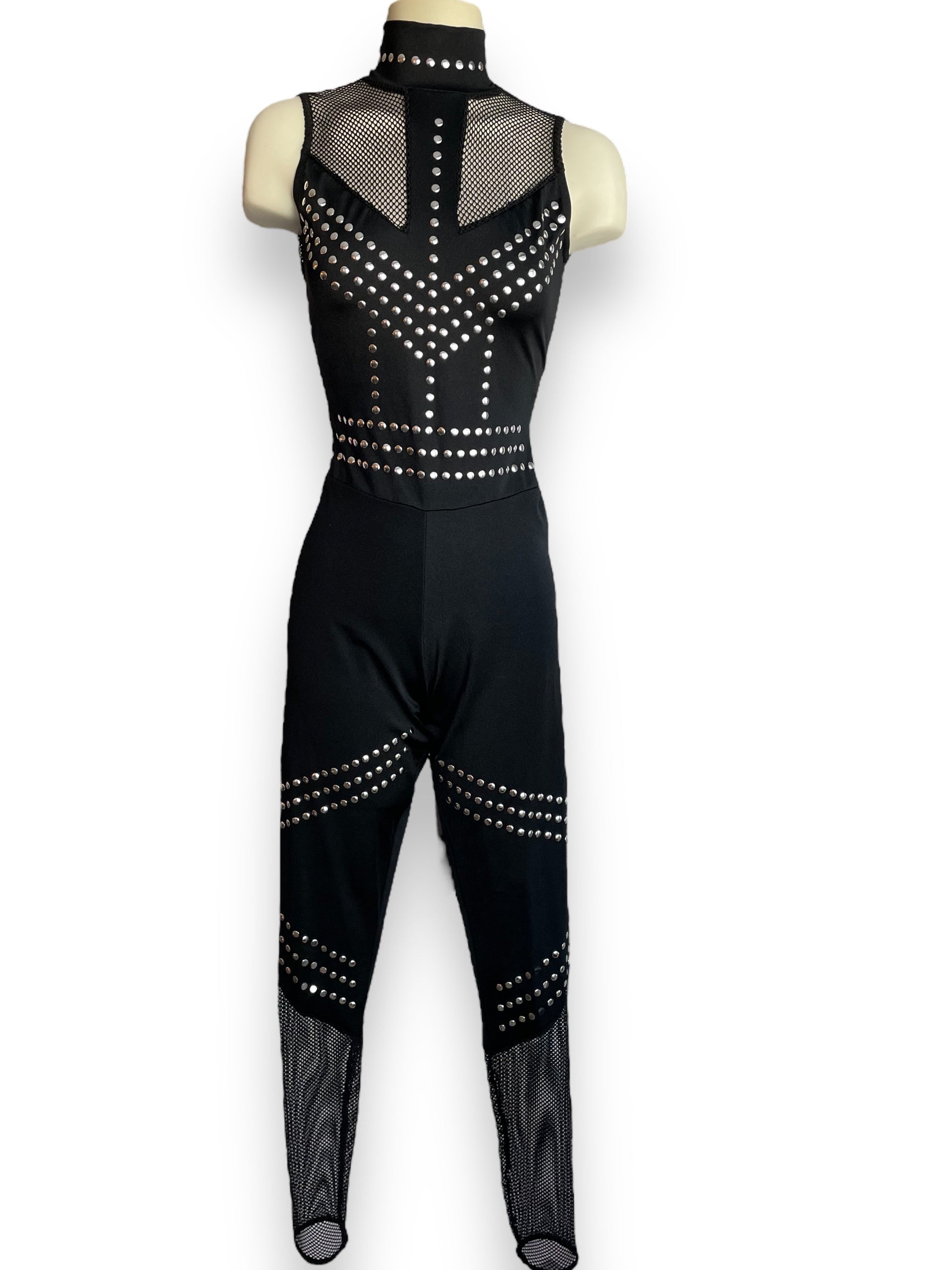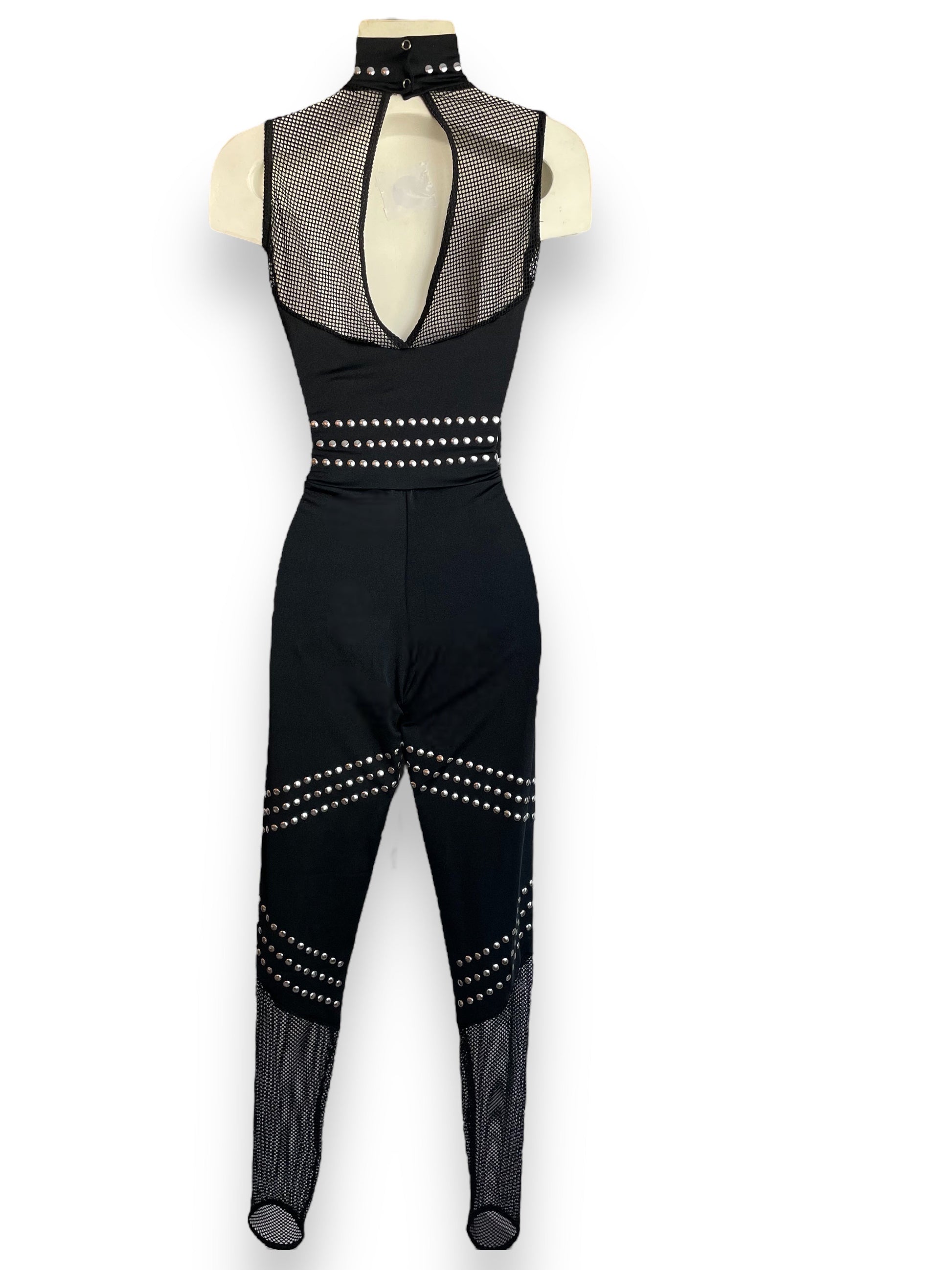 -Spandex unitard with fishnet insets and attached studs