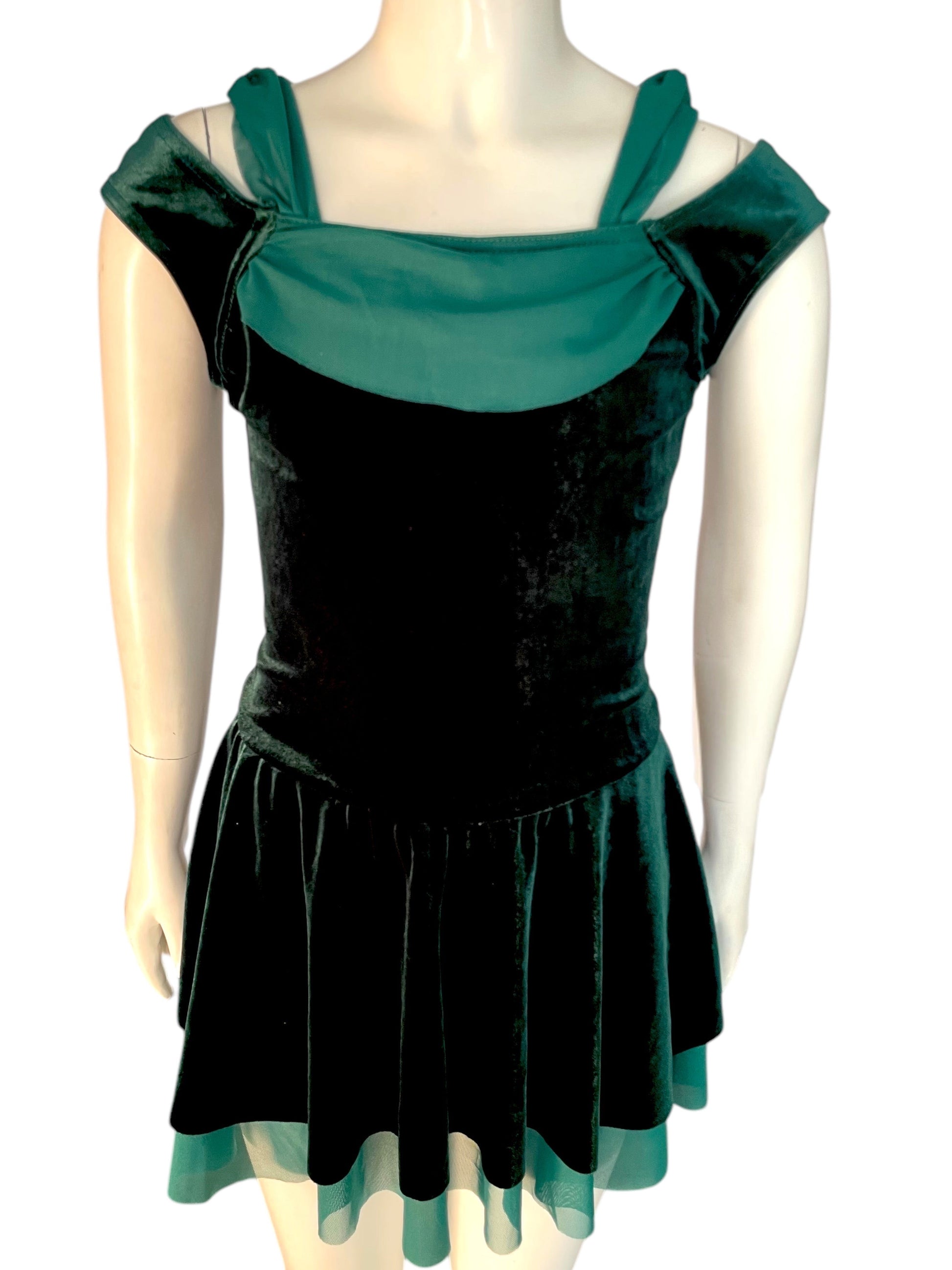 -Velvet top skirt over mesh with attached briefs