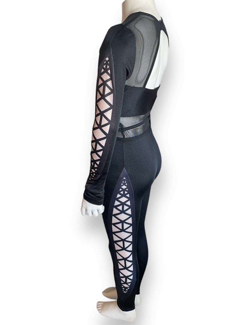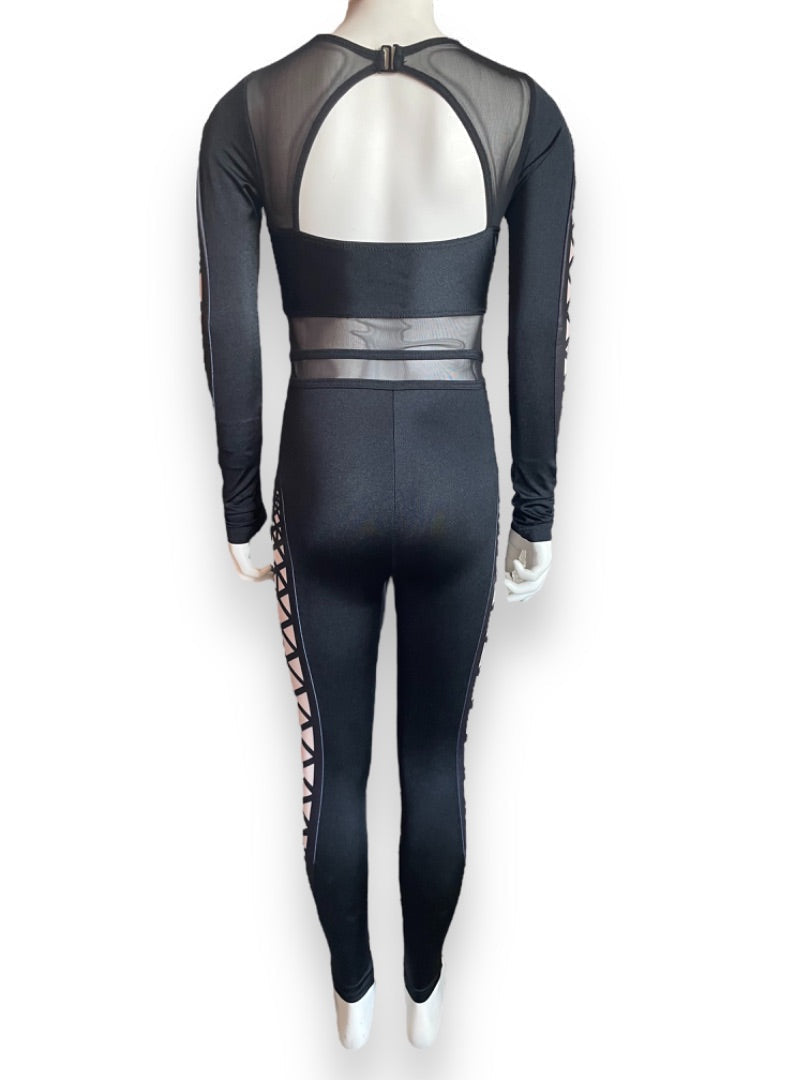 -Lustre spandex unitard with power mesh insets