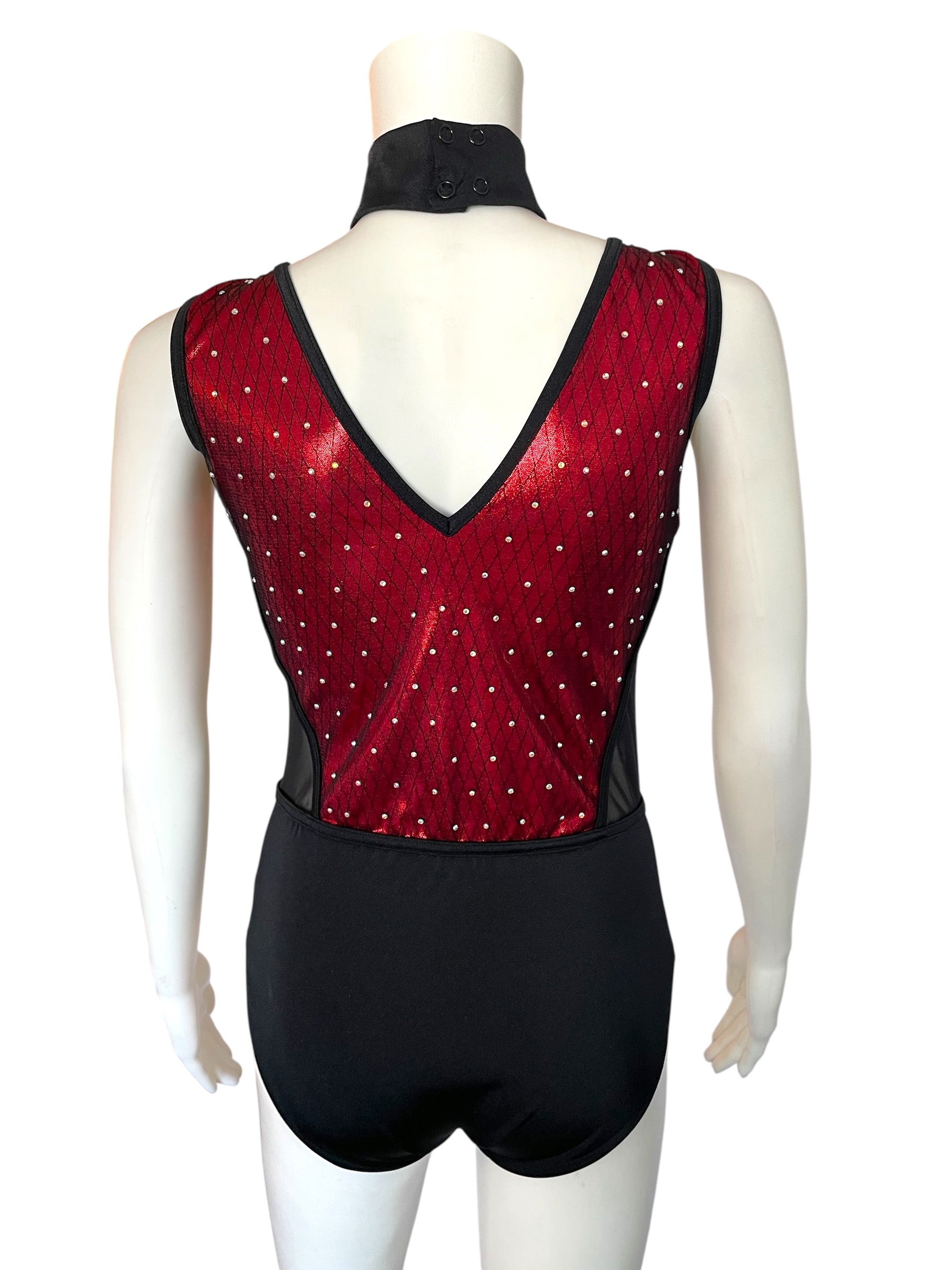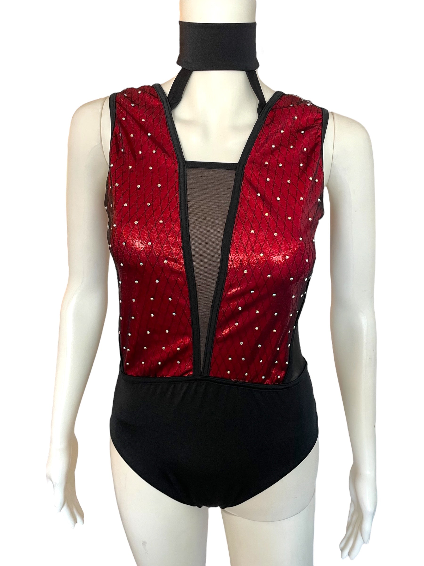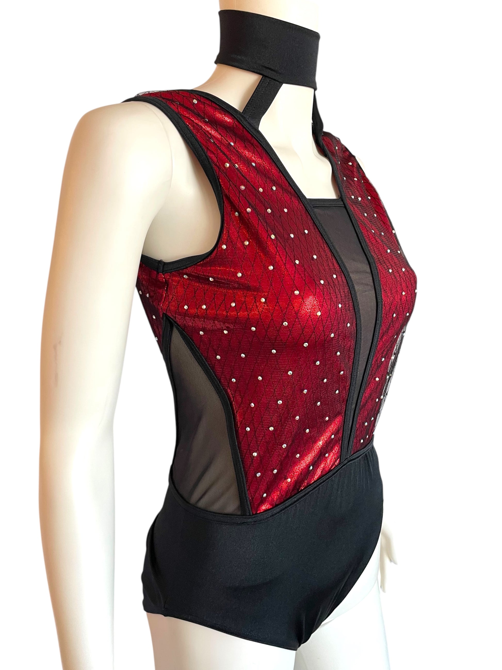 -Leotard made of Premium Metallic with a rhinestone and diamond mesh overlay