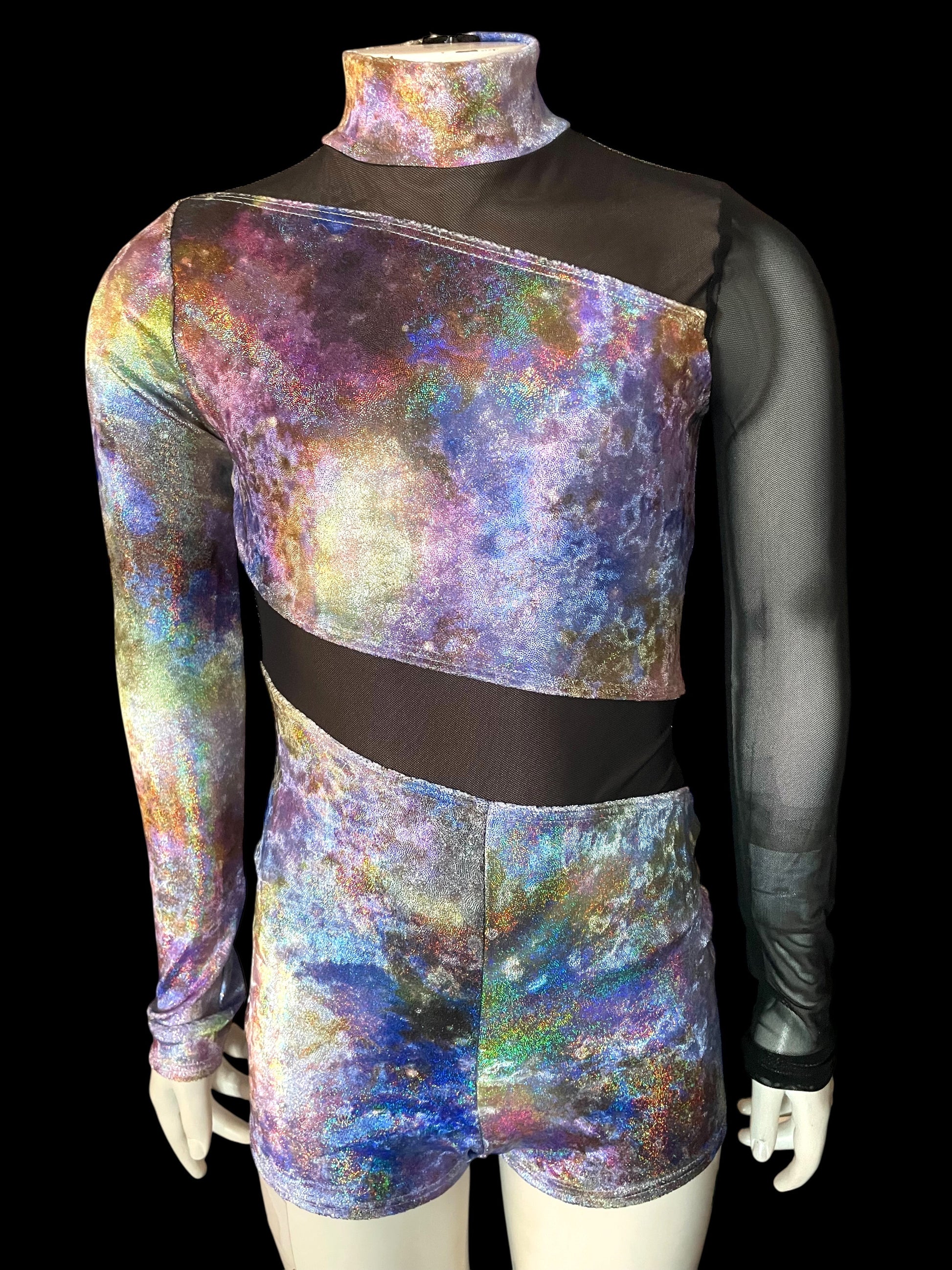 Click 'Size Chart' to view the chart specific to this costume, as sizing varies by dance costume brand.