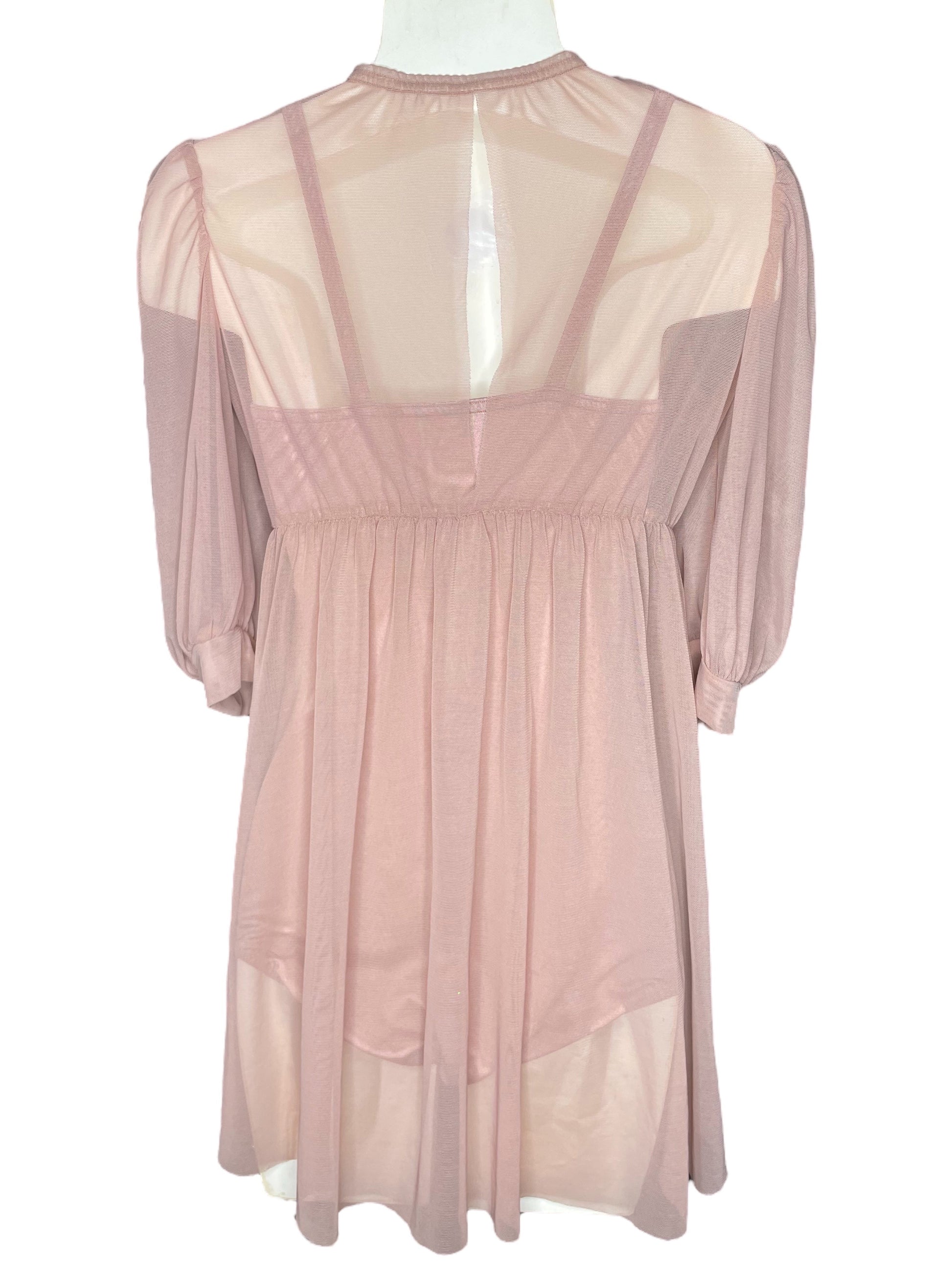 -Back bodice slit, puff sleeves with cuffs and longer back hem
