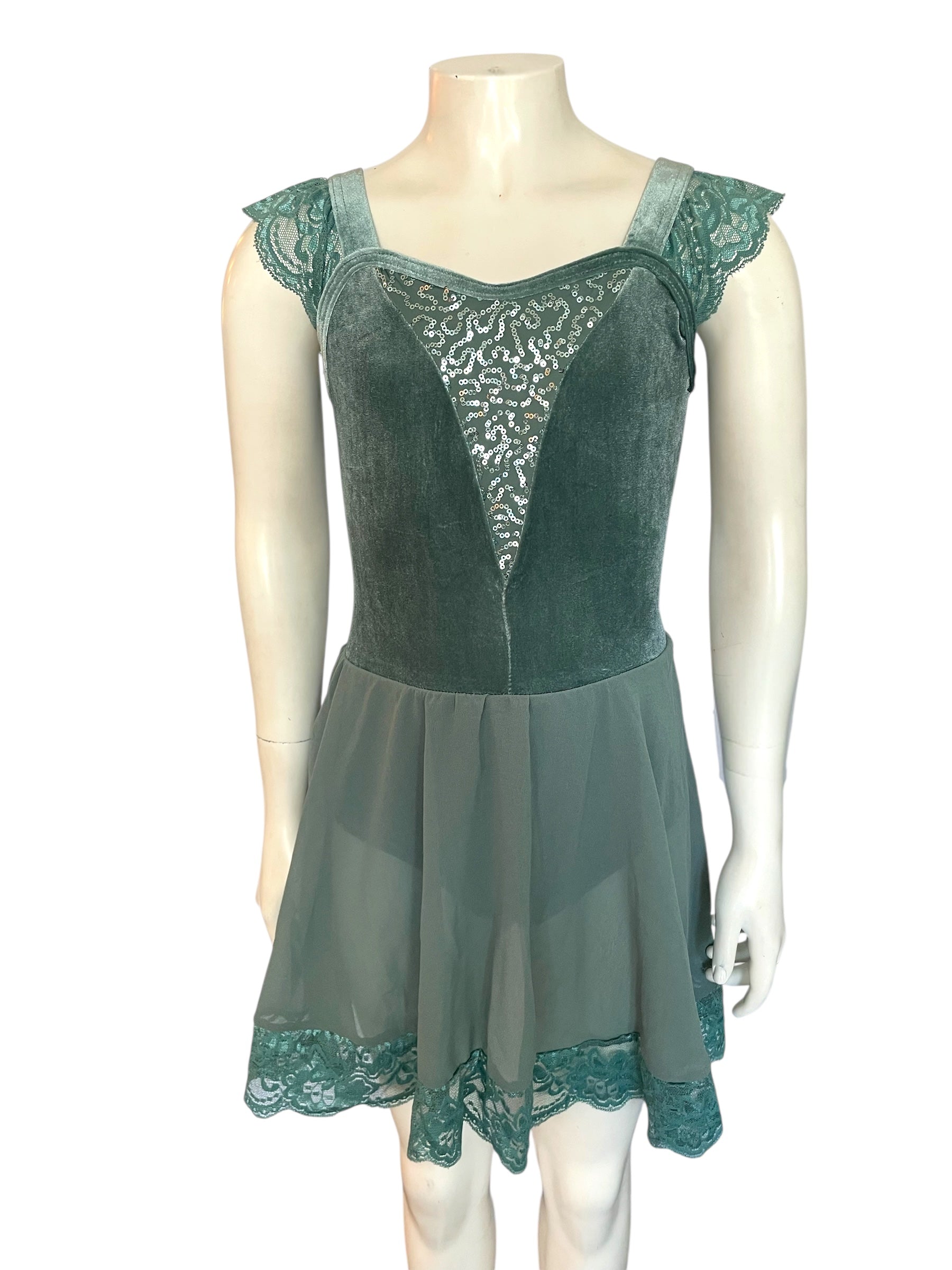 Click 'Size Chart' to view the chart specific to this costume, as sizing varies by dance costume brand.