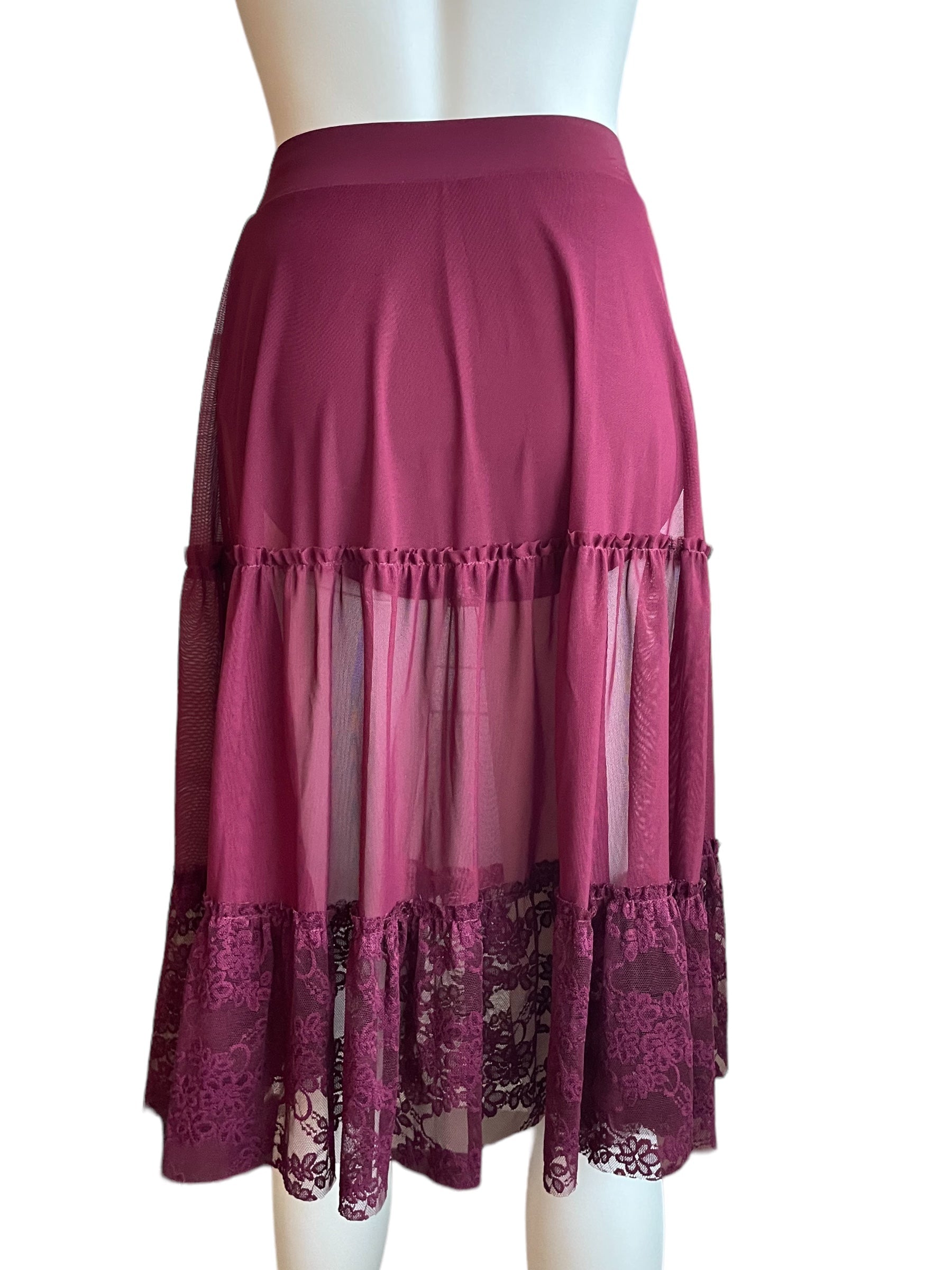 -Power mesh skirt with a stretch lace flounce at the bottom hem